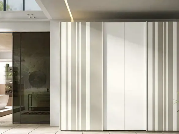 Se cerchi armadiature a muro con ante scorrevoli, clicca e scopri l'armadio Libeccio e Levante Strip C253 di Moretti Compact Giorno Notte in vetro.