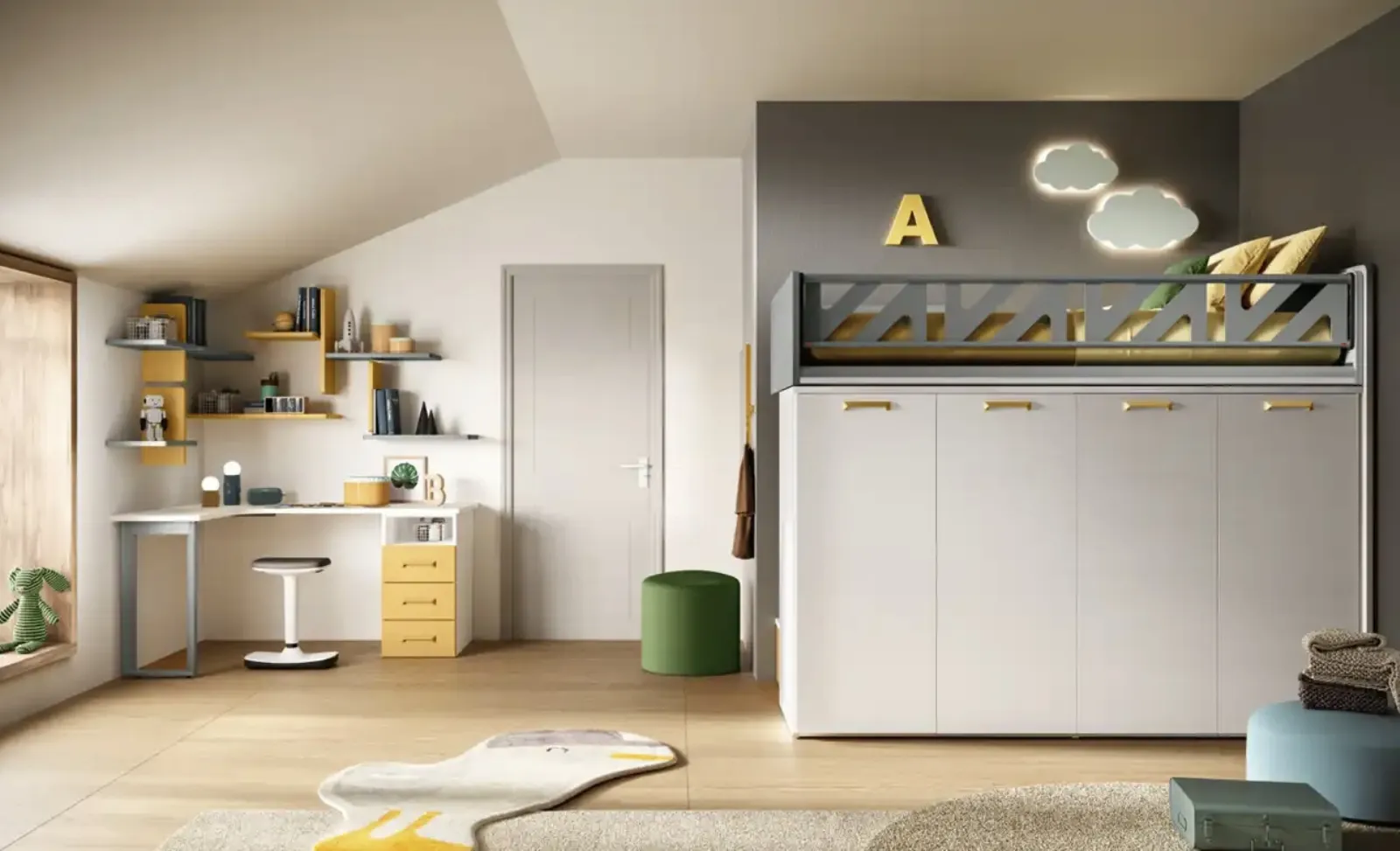Camerette a soppalco per bambini: scopri il modello in melaminico K109 di Moretti Compact Camerette per stanzette moderne.