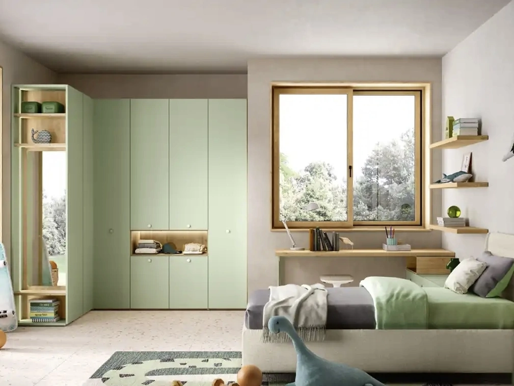 Clicca e scopri di più sulla cameretta per bambini K117! Le Camerette componibili Moretti Compact Camerette ti attendono.