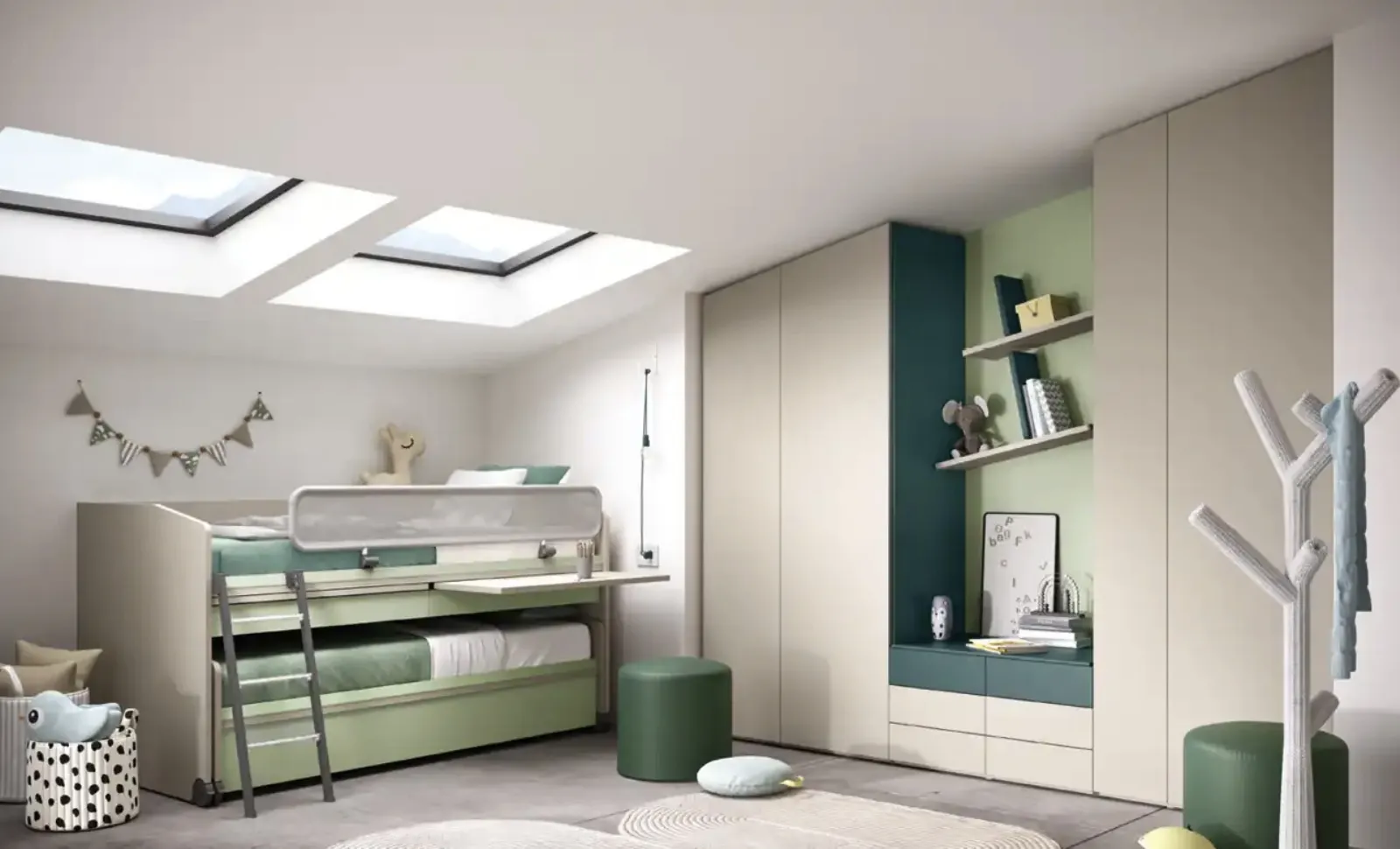 Arreda stanzette moderne con le Camerette con letti scorrevoli Moretti Compact Camerette! Il modello K124 in melaminico è per bambine.