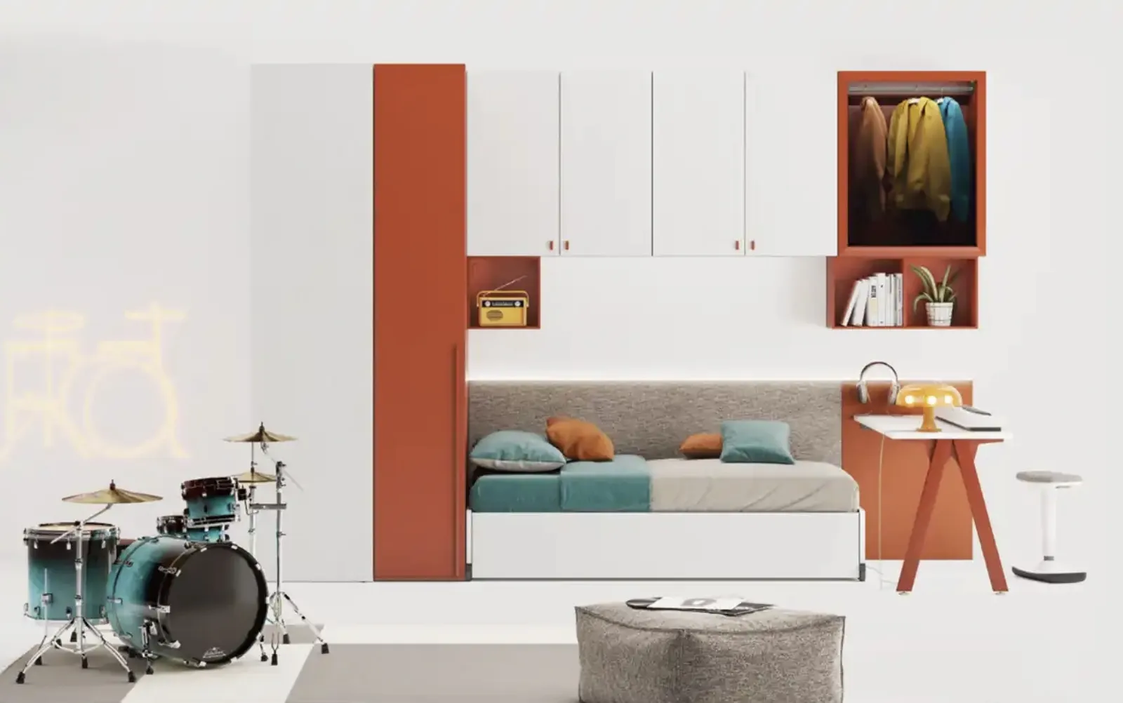 Moretti Compact Camerette asseconda lo stile dei giovani e le necessità dei genitori con le sue Camerette moderne a ponte, ideali per esigenze di ogni genere. Con una composizione arredativa Moretti Compact Camerette, potrai completare con praticità e design il luogo dove i tuoi figli trascorrono gli anni più importanti della vita. Tonalità di tendenza e soluzioni progettuali ad hoc caratterizzano le più originali proposte del rinomato brand che proponiamo in negozio. La Cameretta YGAB di Moretti Compact Camerette in melaminico è un ambiente articolato da arredare attentamente, coniugando differenti accessori su misura.