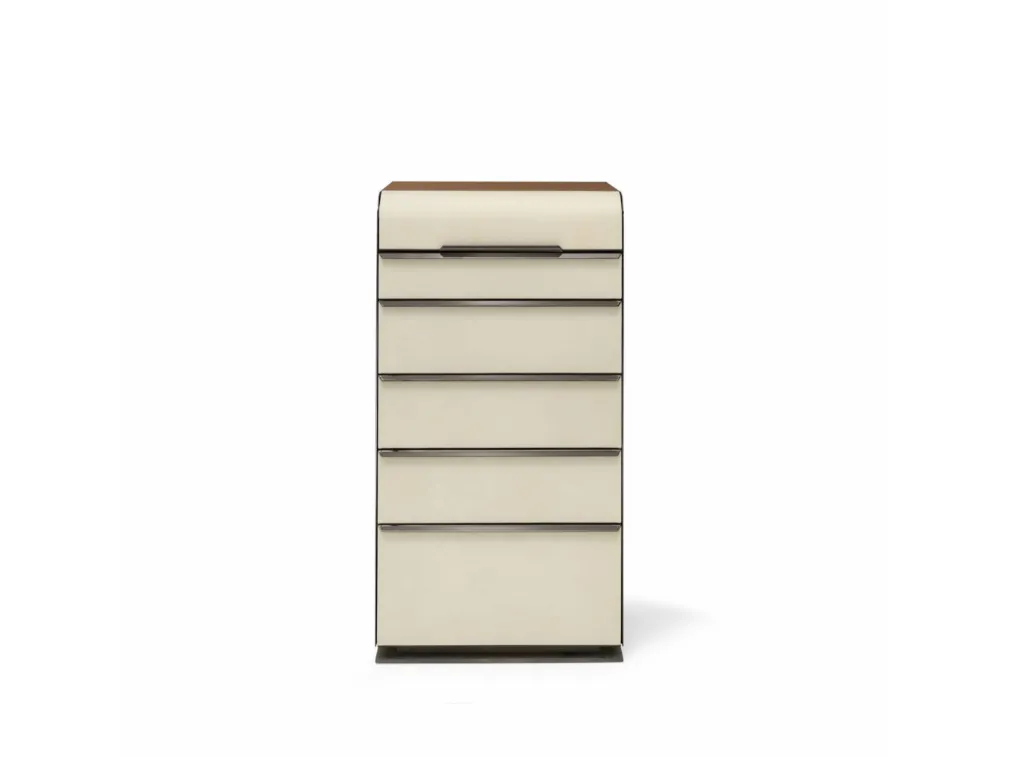 Vuoi progettare la zona notte con Comodini e cassettiere di Arte Brotto? Ecco qui il modello Settimanale Principe MP720L in pelle per spazi design.