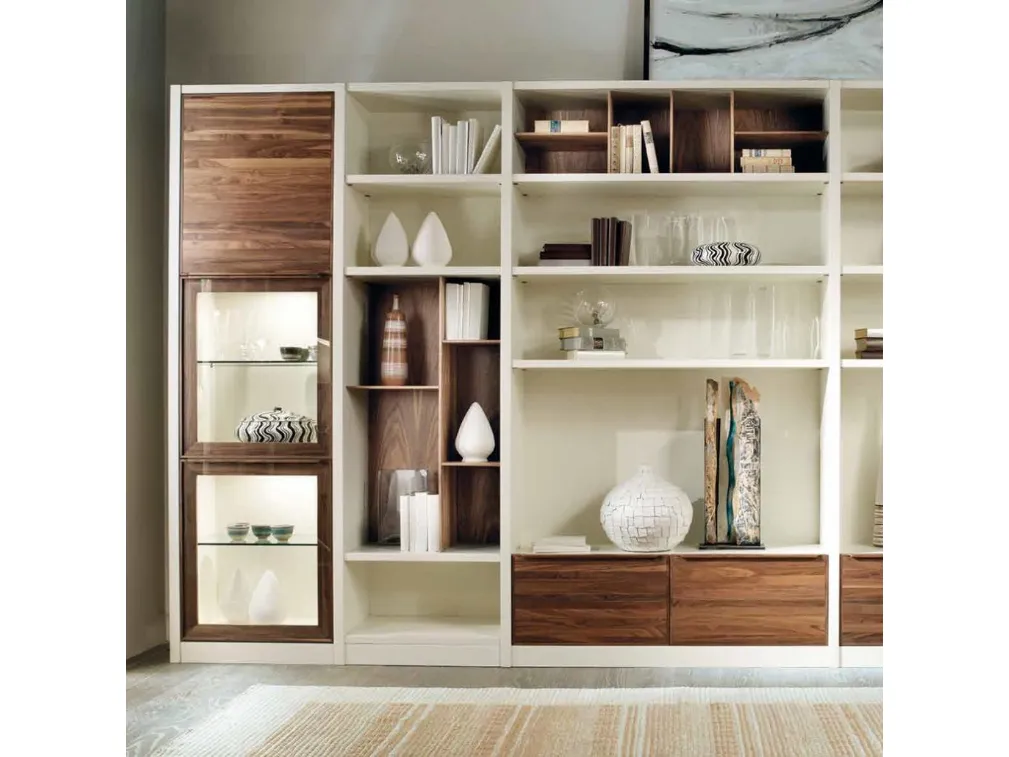 Texture di pregio e linee decise: scopri la libreria Leonardo di Arte Brotto tra le più belle Librerie moderne a muro.
